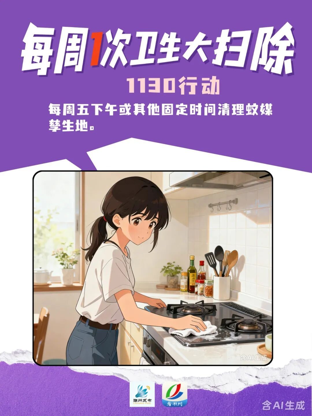倡导市民群众定期打扫卫生,清理家具底部、墙角缝隙、厨房水槽下方、卫生间角落等卫生死角;及时整理室内外杂物(如纸箱、塑料袋等),修剪盆栽枝叶,并清除小型绿化区域的落叶杂草,减少蚊虫藏匿空间。